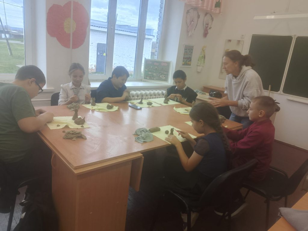 Педагог дополнительного образования  Назаровского районного Дома детского творчества Третьякова Светлана Гениевна провела занятие с обучающимися из Сережской школы в рамках дополнительной общеразвивающей программы «Чудесная глина». На занятии обучающиеся с большим интересом лепили котят из глины.