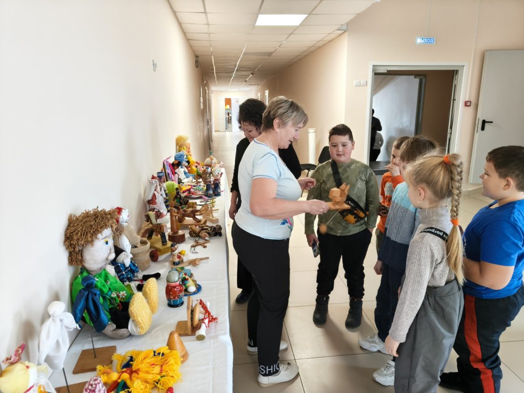 А ещё для ребят была организована передвижная выставка Музея сибирской игрушки. Сегодня народные игрушки быстро исчезают из детства, предпочтение отдается чужеземным игрушкам (роботам-трансформерам, куклам Барби, персонажам иностранных мультфильмов).